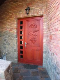 Az épület látszótégla burkolatú, kivéve az előbb említett oromfalat és kerítést, amelyek terméskőből készültek. A ház laposhajlású tetője fémlemez fedésű. A medenceterek fölötti tető egy egyszerű szerkesztésű ragasztott fa főtartókból álló szerkezet.