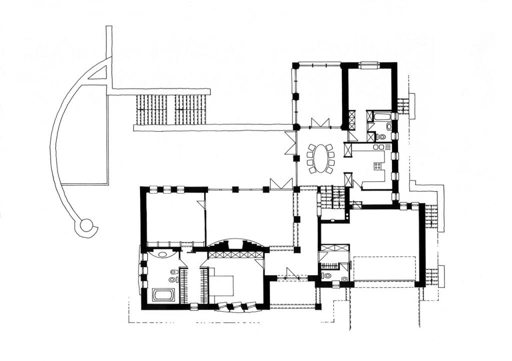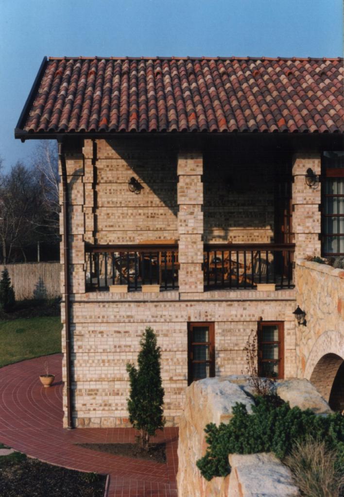 Szabadonálló beépítésű, Dunaparti, új parcellázású nagy telken álló lakóház, szép kilátással a Pilisi hegyekre. Erős lejtéséből adódóan a ház utcai frontja egyszintes, a másik, Dunapart felé néző oldala pedig kétszintes. A lapos hajlású tetőtér beépítetlen. A házat hidegkúti terméskő és horizontálisan osztott nyerstégla borítja. A tetőre a lapos hajlást bíró mediterrán cserépfedés került, melyet vörösréz bádogozás egészít ki. A ház fő belső terei szintén nyerstégla burkolatúak.