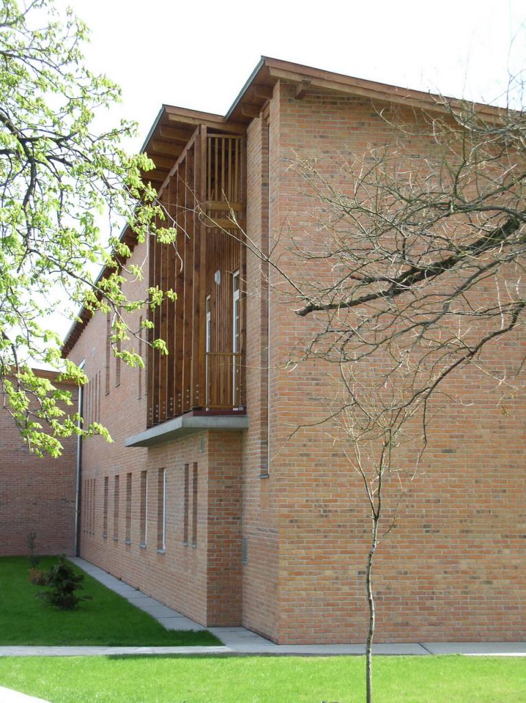 A másik épületszárny kétszintes. Az egyik végén (mindkét szinten) az uszodához tartozó öltözők helyezkednek el. Ebben az épületrészben van a főbejárat és az előcsarnok, ahová a meglévő gimnázium épületéből is át lehet jutni, az uszodaszárny galériaszintjén lejőve.